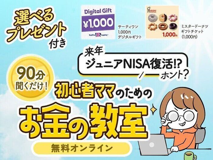 ジュニアNISA復活!? ママの悩みを知り尽くしたトップ0.6%のプロ中のプロ(※)による大人気セミナー